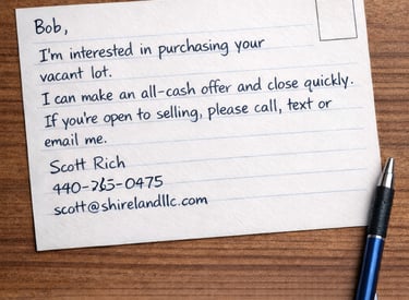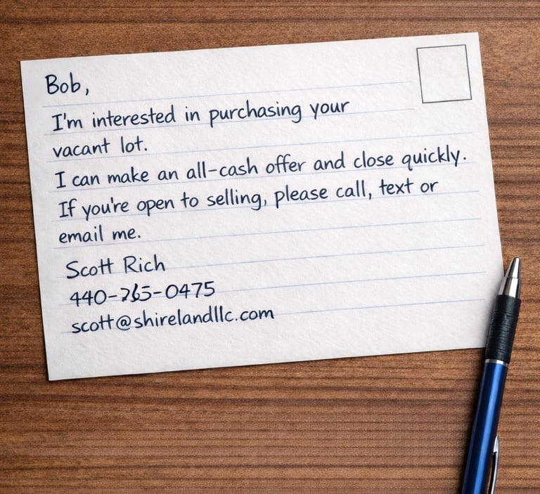 We seek out unused vacant lots from people who want to close quickly, with minimal effort and no closing costs.