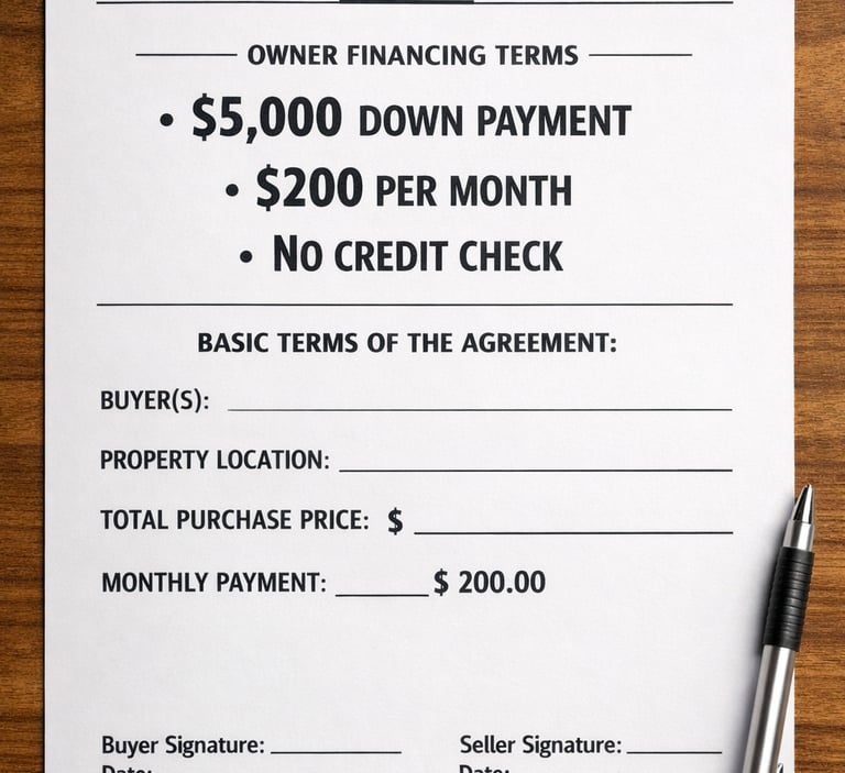We sell small acreage vacant lots for a below market cash price, or with simple owner-financing.